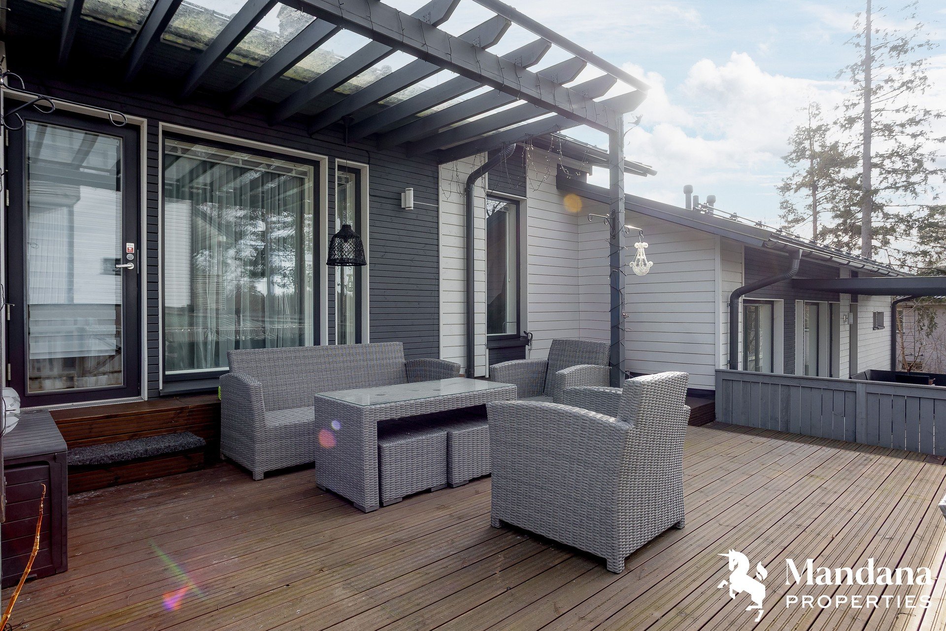 Tilava terassi tarjoaa viihtyisän paikan ulkoilmasta nauttimiseen. Lisäksi asunnolle kuuluu kaksi sähköpistokkeellista autopaikkaa, joissa on myös sähköauton latausmahdollisuus.
