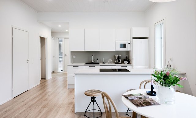 Avarat huoneet ja suuret ikkunat tekevät kodista valoisan ja viihtyisän. Avokeittiö saarekkeineen toimii kodin keskipisteenä, jossa arki ja yhdessäolo sujuvat luontevasti. Päämakuuhuoneen yhteydessä oleva vaatehuone tuo arkeen käytännöllisyyttä ja lisää säilytystilaa.