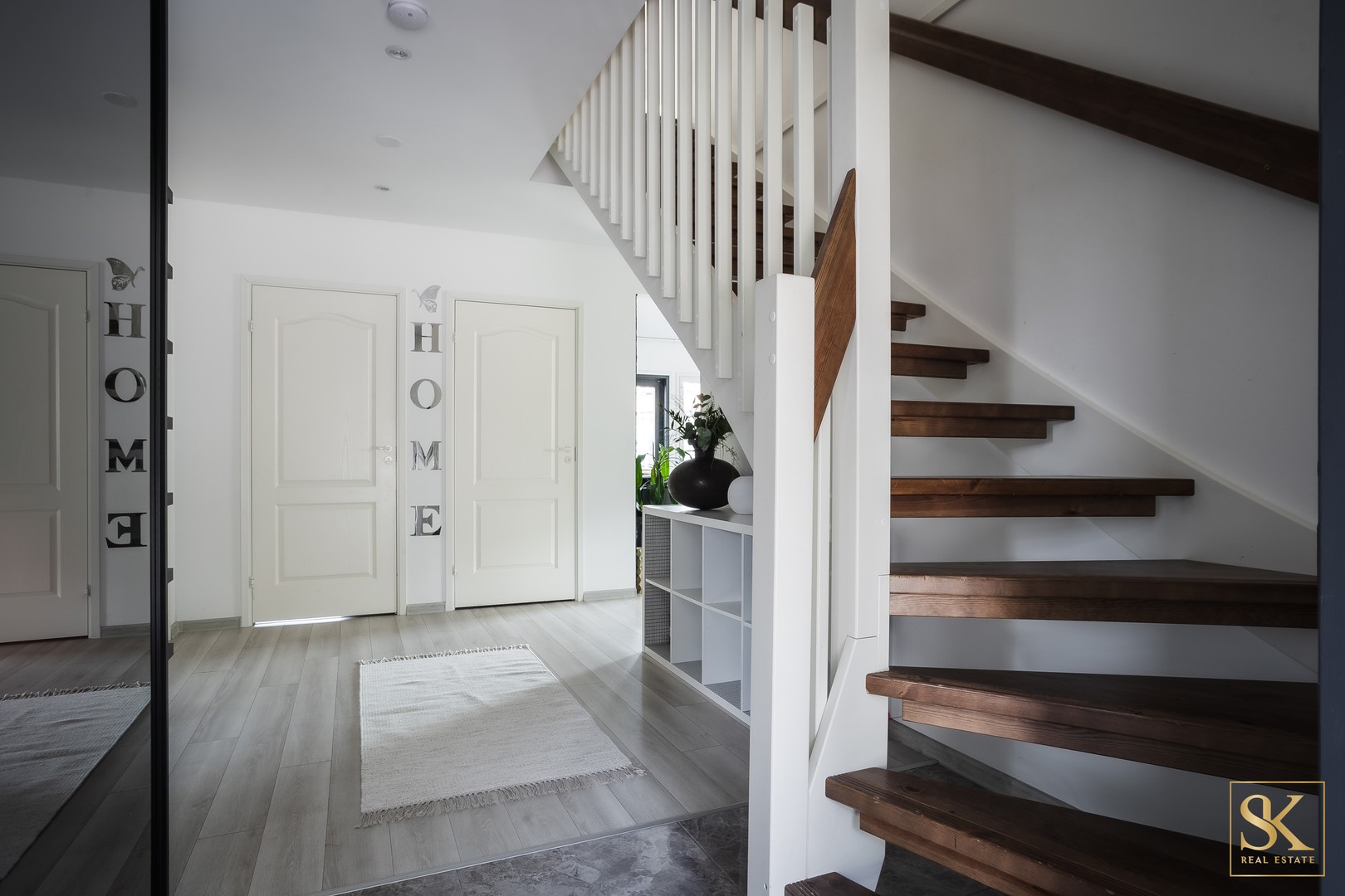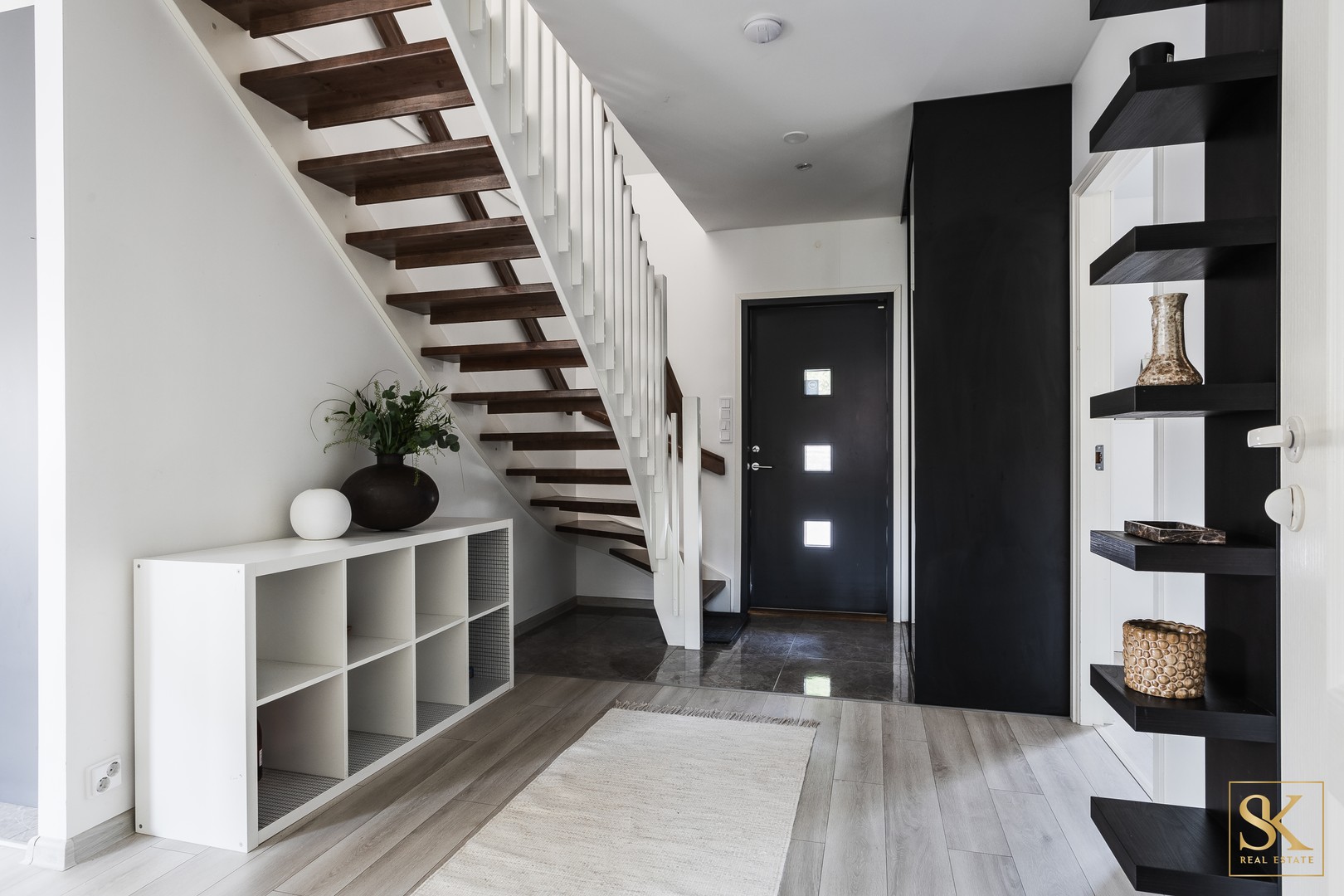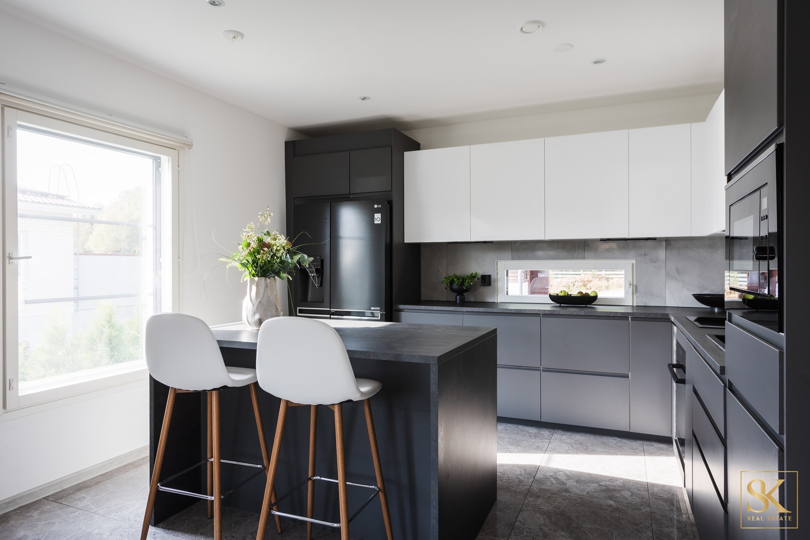 Tämä vuonna 2022 valmistunut Muurametalojen omakotitalo tarjoaa kodikkaan asumisen rauhallisella paikalla. Perheen yhteinen oleskelutila on alakerrassa, jossa keittiö, ruokailutila ja olohuone muodostavat avaran ja yhtenäisen tilan. Olohuoneen jatkeena on suuri terassi, jolta avautuu näkymä suojaisalle takapihalle.