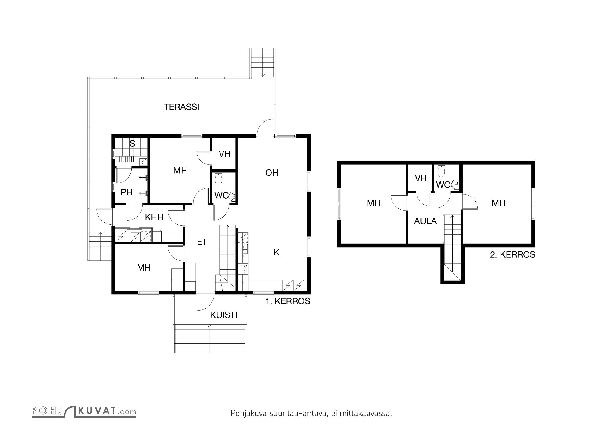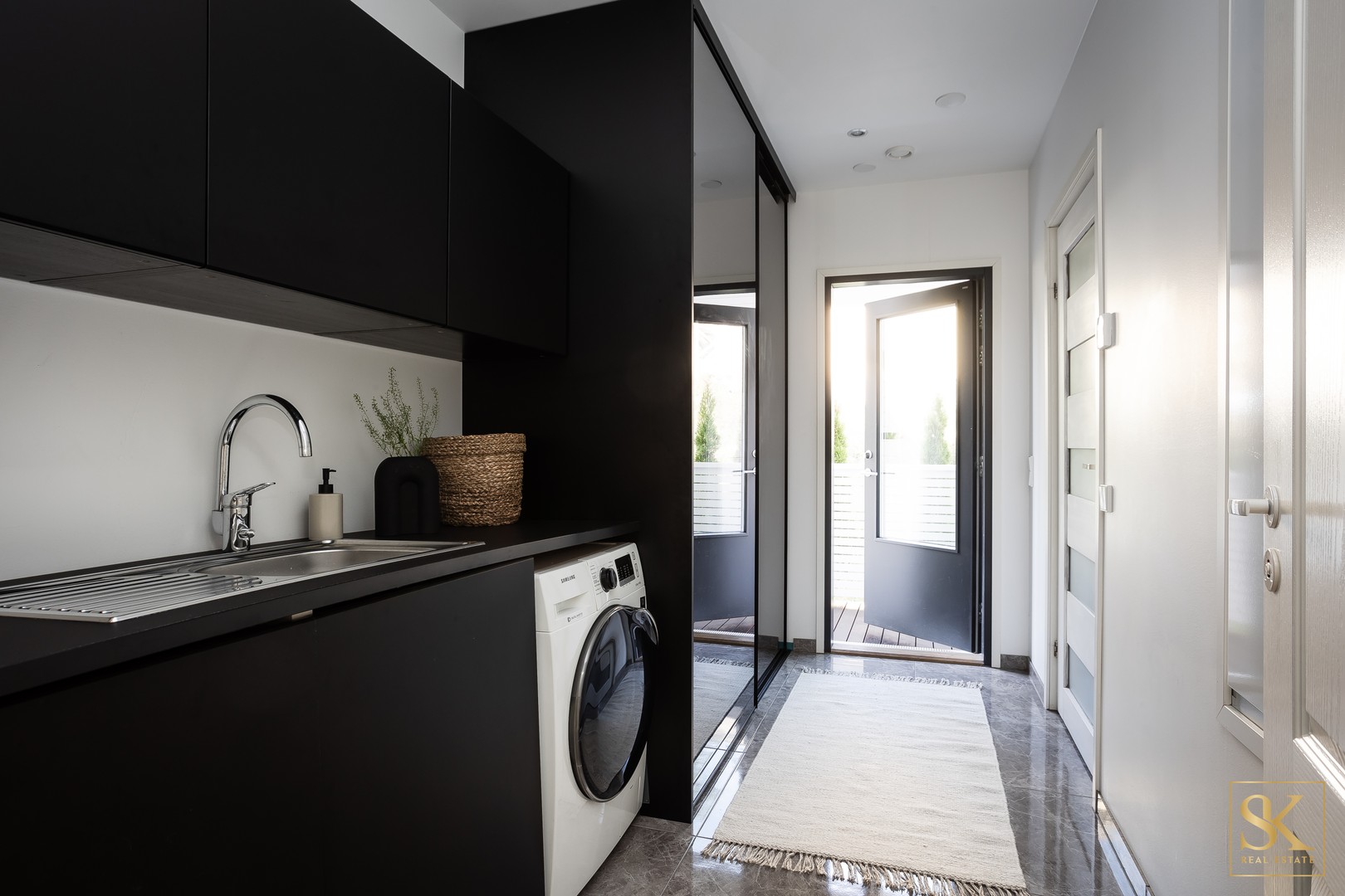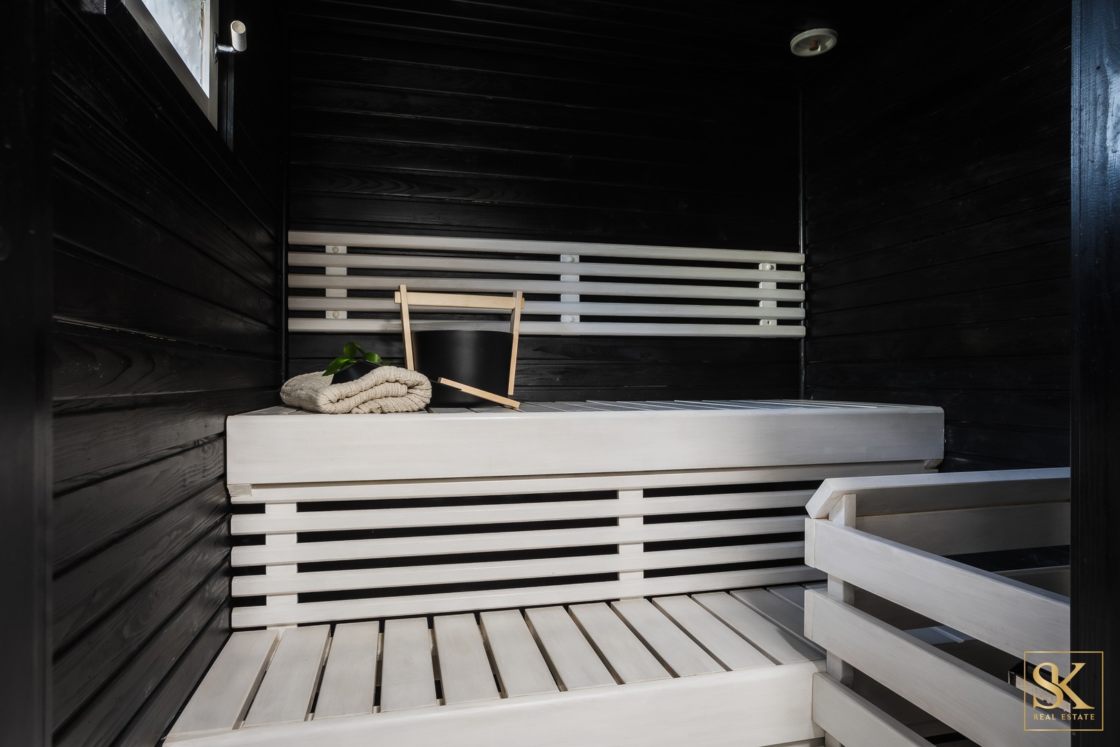 Alakerrasta löytyy myös kaksi makuuhuonetta, pesuhuone kahdella suihkulla, tunnelmallinen sauna sekä erillinen wc. Kodinhoitohuone omalla sisäänkäynnillä helpottaa arjen sujuvuutta ja toimii loistavasti esimerkiksi kuraeteisenä.