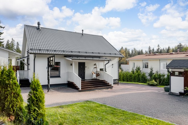 Uudehko omakotitalo päättyvän tien varrella Gumbölessä.