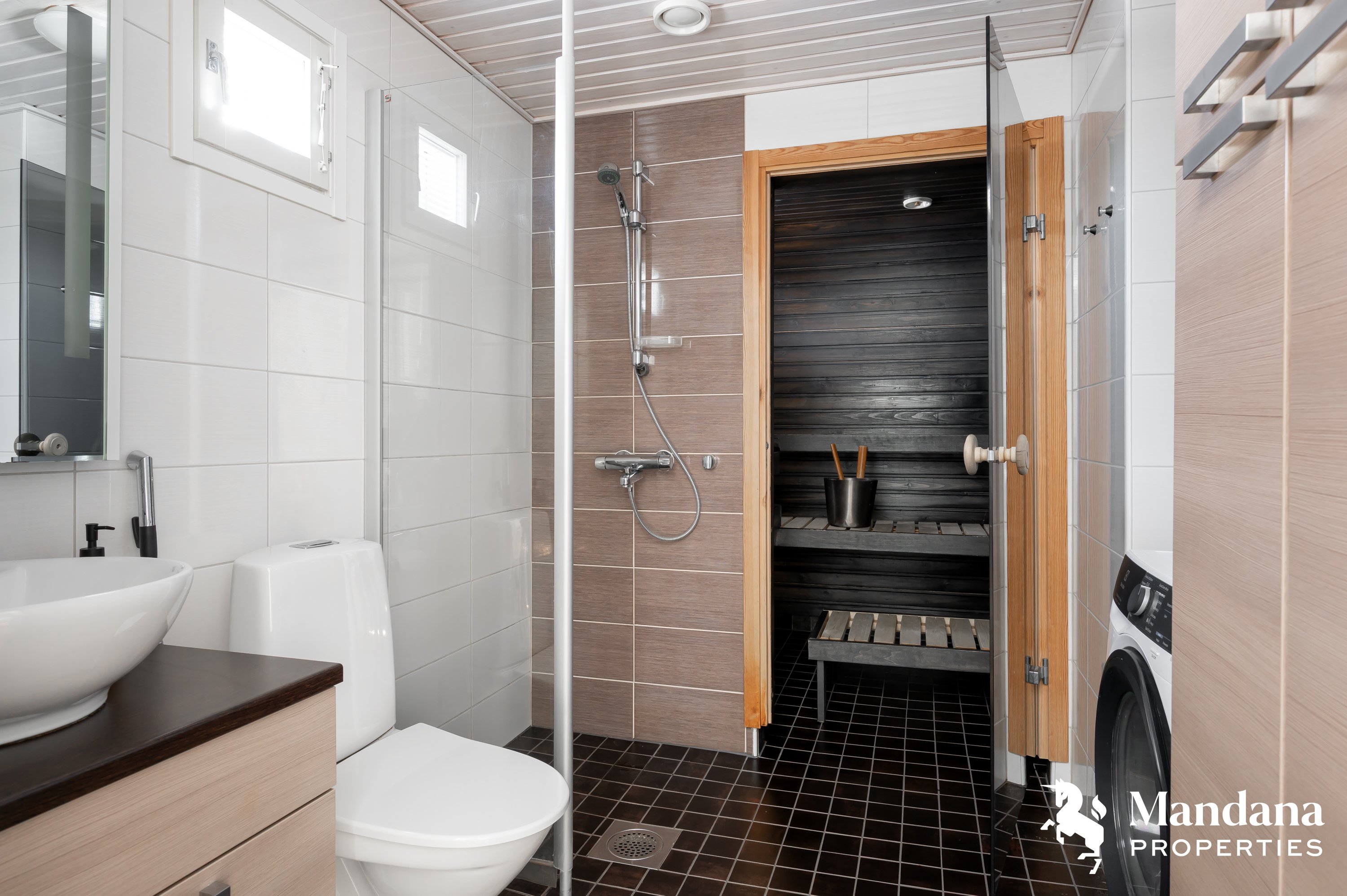 Talon tilat jakautuvat kahteen kerrokseen, ja alakerrassa sijaitsee avara olohuone. Keittiössä on keraaminen liesi ja Boschin integroidut kodinkoneet, jotka tekevät ruoanlaitosta nautinnollista. Yläkerrassa sijaitsevat makuuhuoneet tarjoavat rauhalliset puitteet levolle, ja sauna kutsuu rentoutumaan pitkän päivän päätteeksi.
