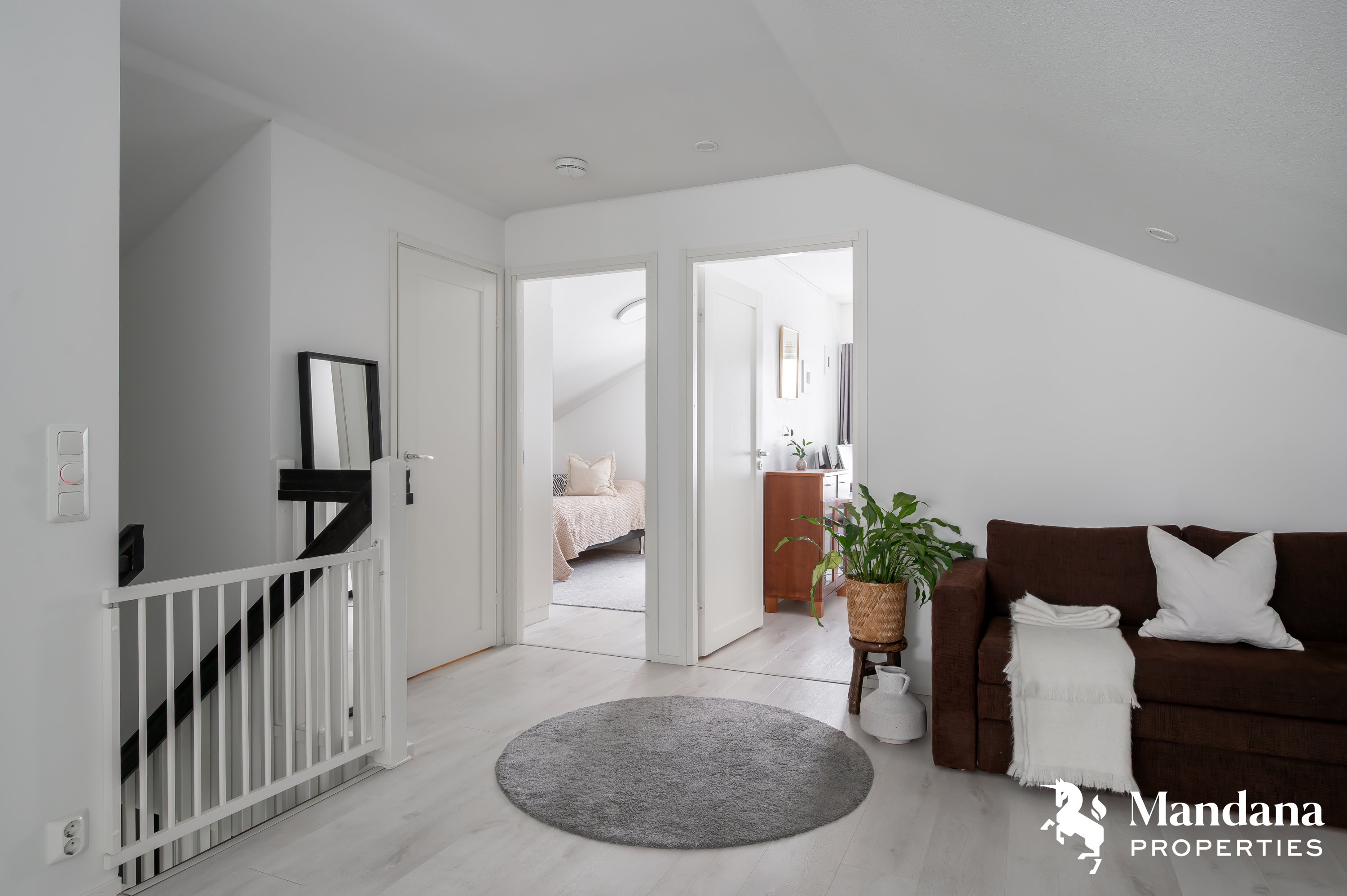 Toisessa kerroksessa on monikäyttöinen aulatila, joka soveltuu täydellisesti esimerkiksi nuoremman väen omaksi olohuoneeksi. Lisäksi toisesta kerroksesta löytyy oma kylpyhuone/wc, vaatehuone sekä kaksi toimivan kokoista makuuhuonetta.