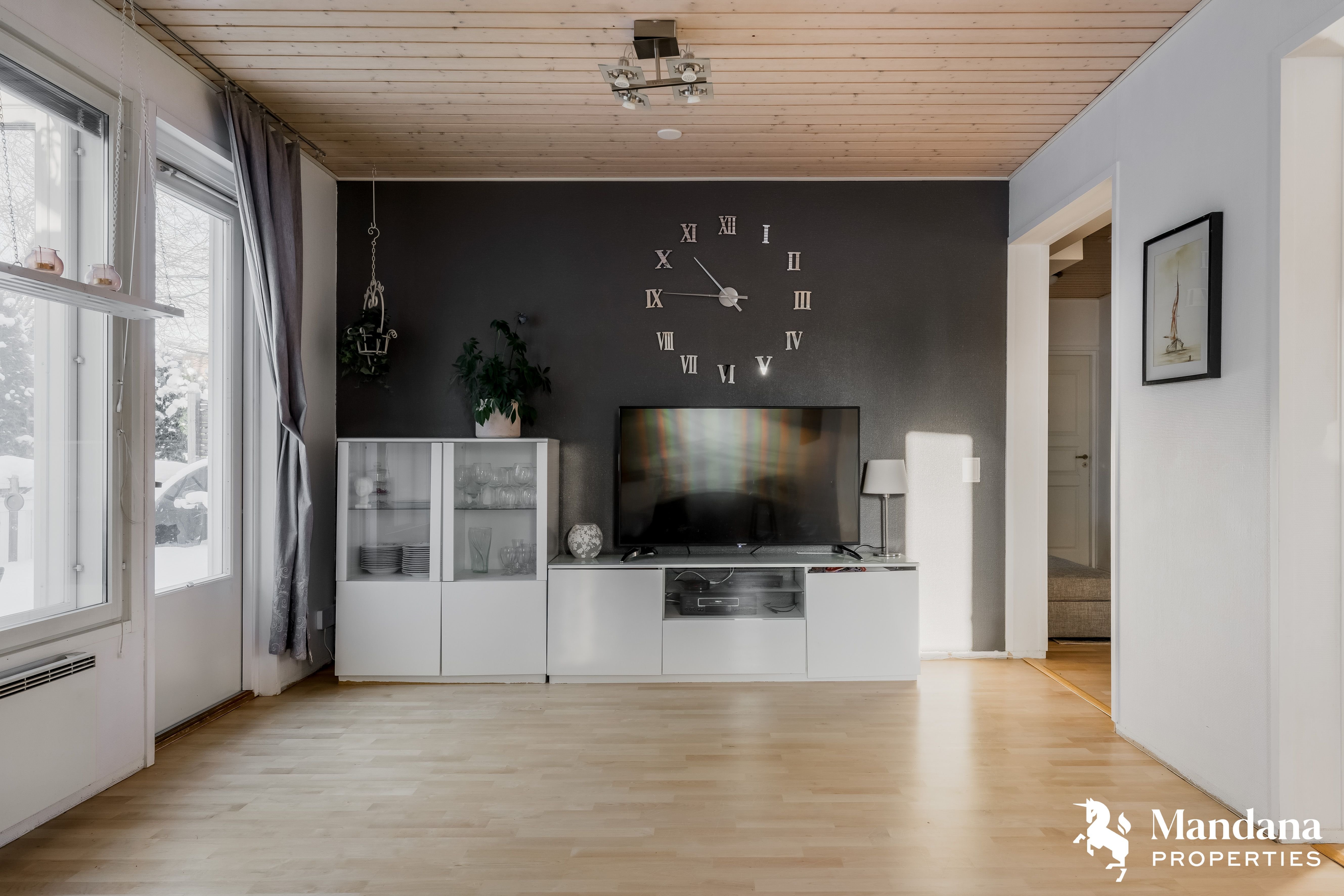 Kodin sydän on avara ja valoisa olohuone, jossa tilan tuntua ja luonnonvaloa on runsaasti. Olohuone jatkuu vuonna 2021 uusitulle terassille, joka kiertää taloa lounais- ja pohjoissivulla ja tarjoaa erinomaiset puitteet yhdessäoloon, ruokailuun ja rentoutumiseen. Terassin lasitettu oleskelualue mahdollistaa käytön pitkälle syksyyn ja ympäri vuoden, ja ulkoporeamme kruunaa rentoutumishetket kiireisen arjen vastapainoksi.